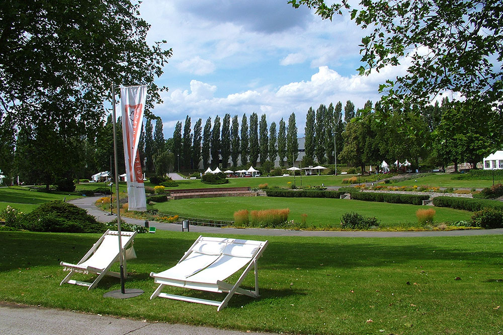 Auch der Sommergarten ist eine Besonderheit unseres Messegeländes. Egal ob als Präsentations- und Eventfläche oder als Ort der Ruhe, unsere 10.000 m² große Grünflache lässt keine Wünsche offen. Aus allen Hallenübergängen ist der direkte Zugang zum Sommergarten möglich.